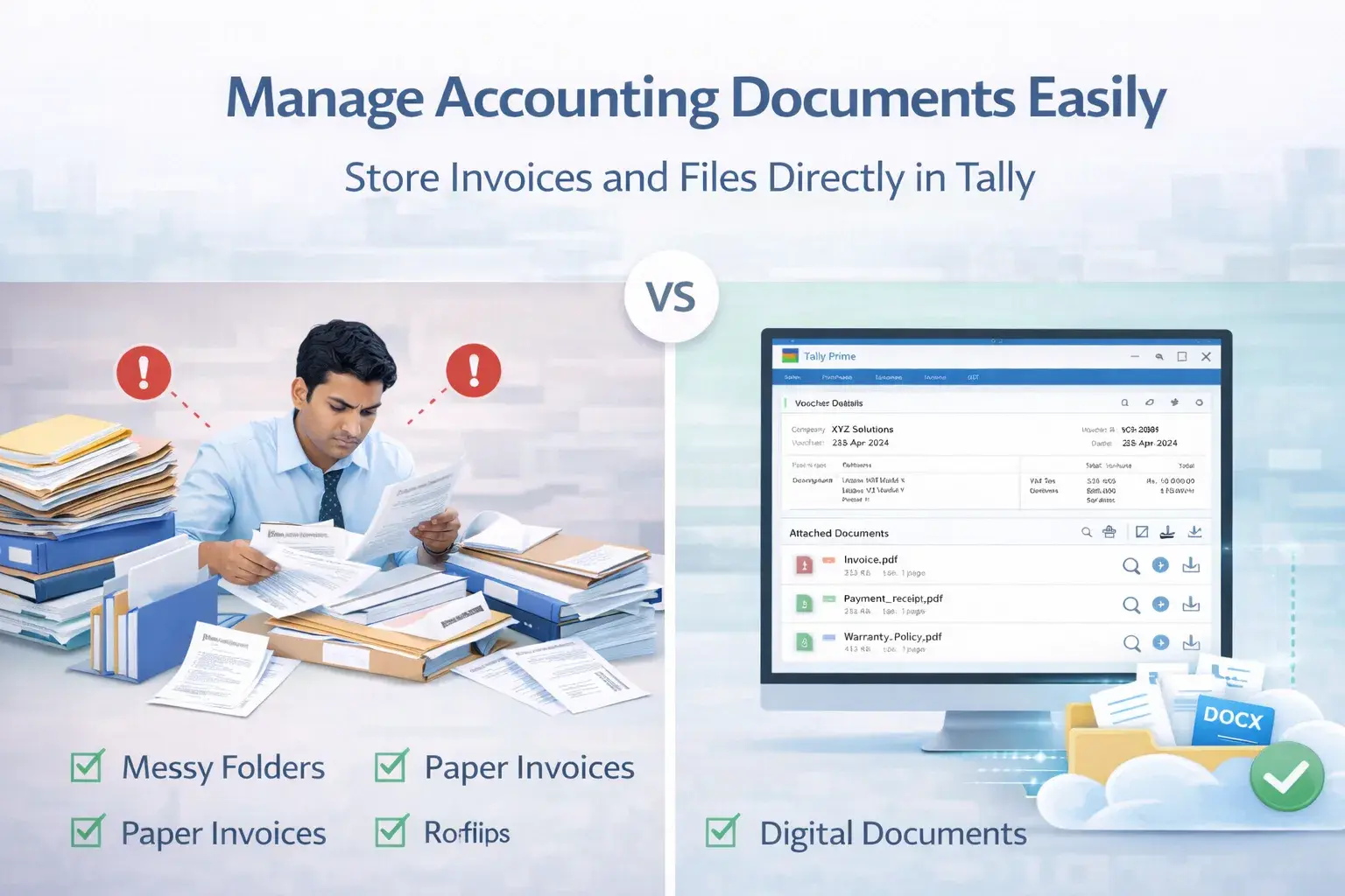 📁 Direct Attachment: Link docs directly to Tally vouchers.
